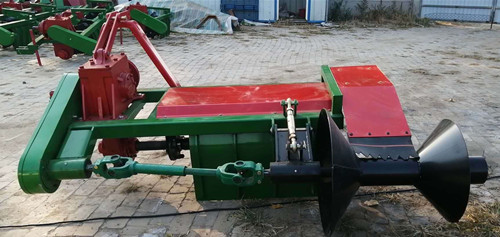 起壟機 單壟起壟機山東菏澤魯富機械公司專業(yè)生產(chǎn)本實用新型屬于煙田起壟設(shè)備領(lǐng)域,特別涉及一種簡易單壟起壟機,其包括變速箱以及固定設(shè)置在變速箱前方的機架,機架上固定設(shè)置有發(fā)動機,變速箱后方固定設(shè)置有第一固定架,第一固定架頂面設(shè)置有犁鏵寬窄調(diào)整器,第一固定架后方鉸接有兩個拖架,兩個拖架另一端鉸接在第二固定架前方,第二固定架后方固定設(shè)置有前支架,前支架上鉸接設(shè)置有犁架,犁架與前支架鉸接處設(shè)置有犁鏵深淺調(diào)整器,犁架下端固定設(shè)置有犁鏵,犁架右邊固定設(shè)置有翻土架,翻土架上固定設(shè)置有翻土板;變速箱上部固定設(shè)置有肥料箱,肥料箱下部連接有伸縮管且與其相通,伸縮管上設(shè)置有閥門。本實用新型結(jié)構(gòu)簡單,成本低,適于小塊地作業(yè)。咨詢電話:15054691199 13954097171